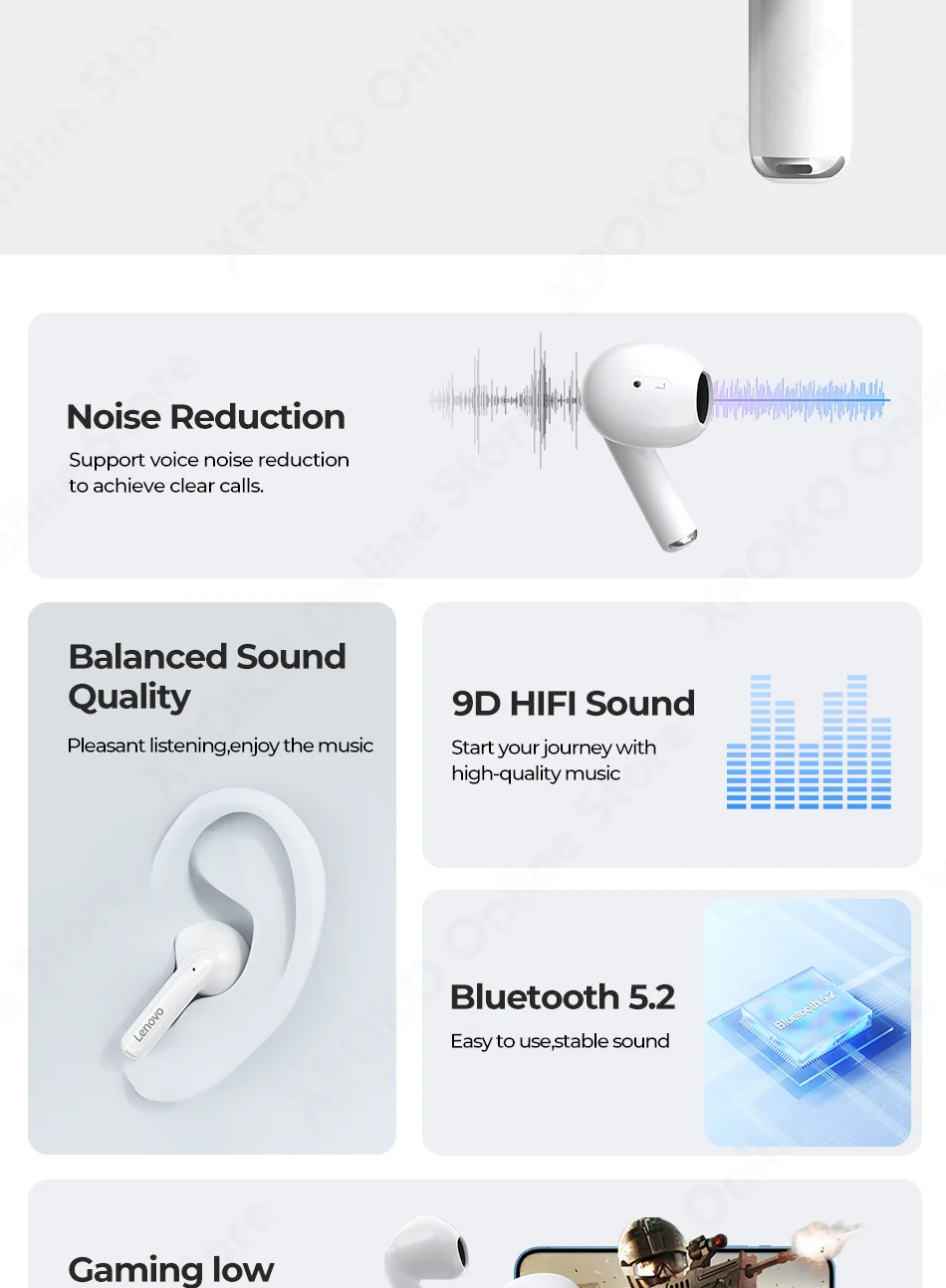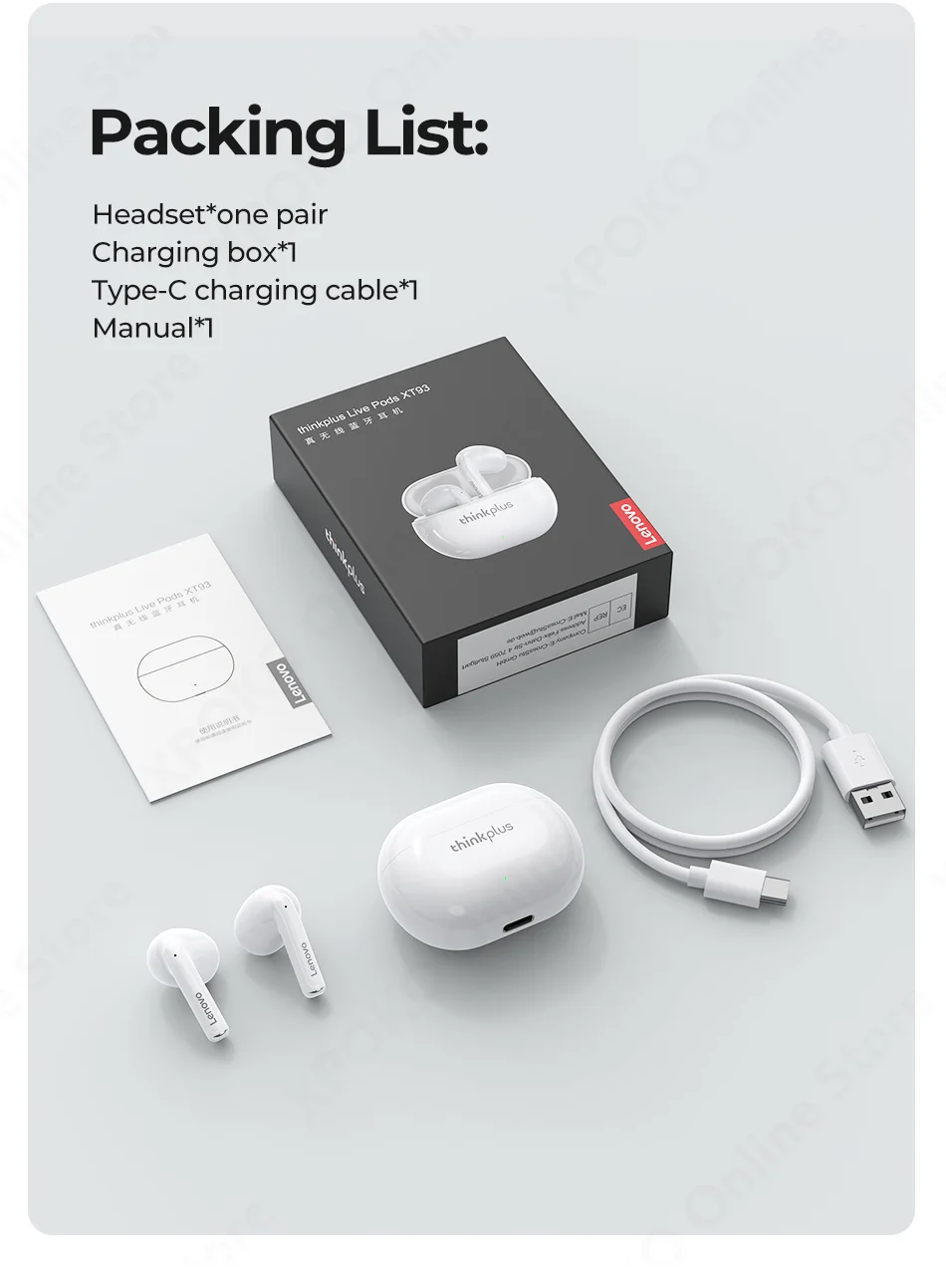 Lenovo XT93 Bluetooth 5.2 Headphones Wireless Earphones Waterproof Earbuds Touch Control with Dual HD Mic Long Standby Headsets We ensure that every device has undergone rigorous testing before leaving the factory to ensure 100% high quality before it leaves the factory. Rest assured...